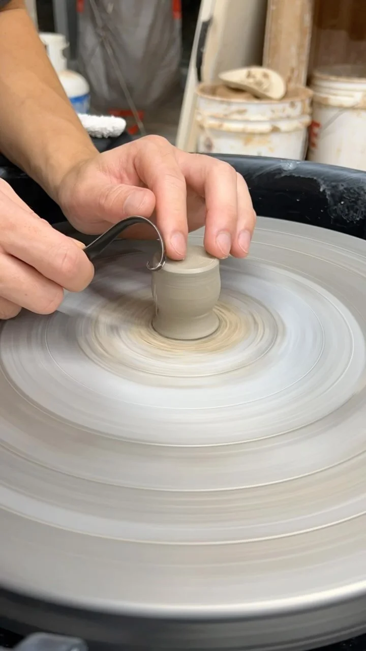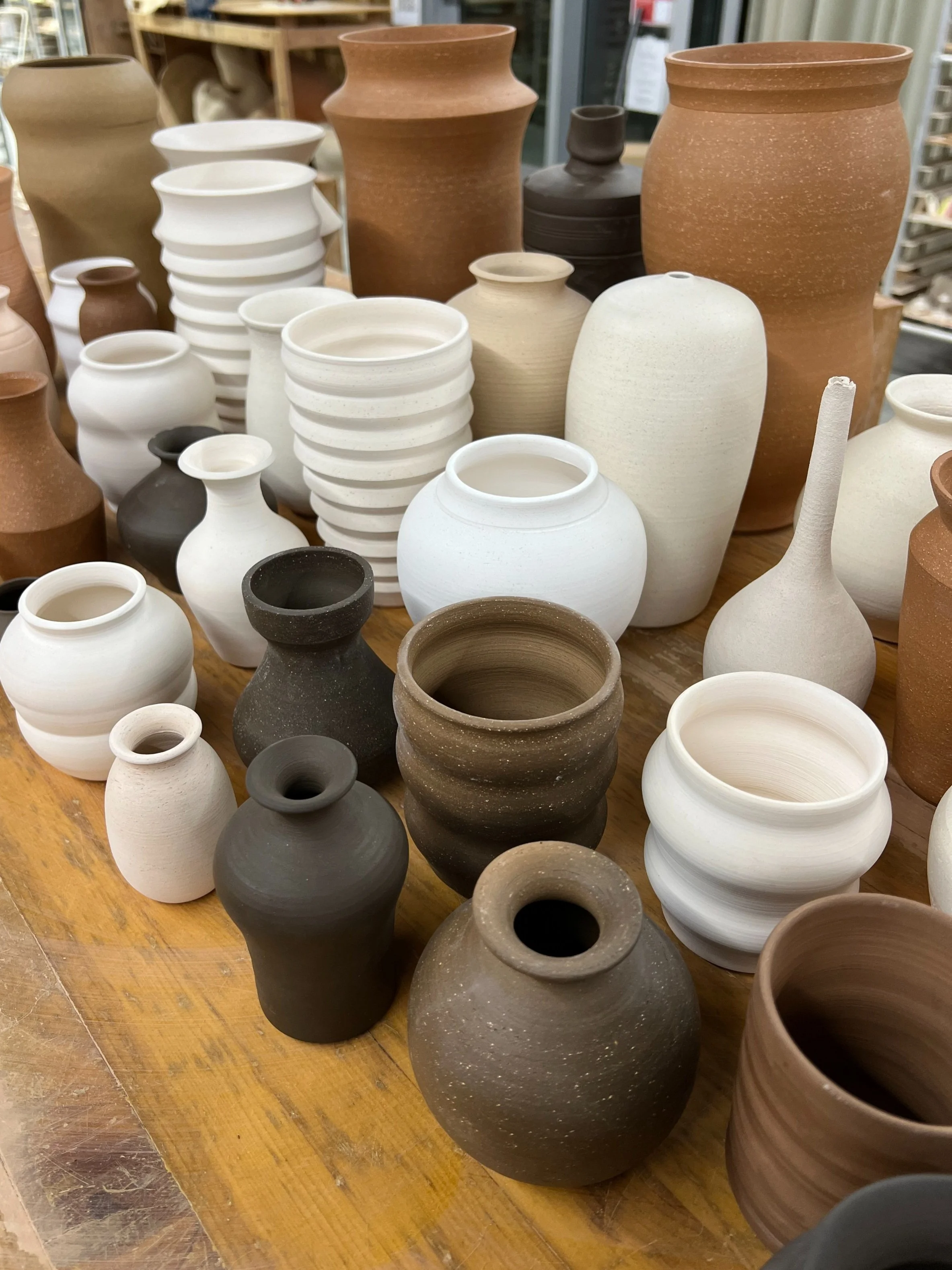 After a ceramic piece is thrown on the wheel, it dries slowly, is trimmed at the leather hard stage, and then, only once itβs fully bone dry, is carefully loaded into an electric kiln and fired to about 1900Β°F (cone 05) for the βbisqueβ firing. This process changes the clay into what we call ceramic, permanently setting the shape. Up until this point the clay could always be reclaimed into new raw clay by reintroducing water, but the bisque firing is the first irreversible process.